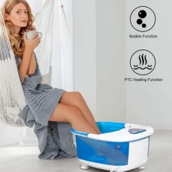 Costway All-In-One Foot Spa Bath Massager Tem/Time Set Heat Bubble Vibration W/6 Roller