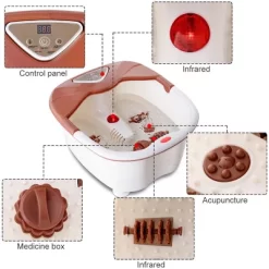 Costway Foot Spa Bath Massager LCD Display Temperature Control Heat Infrared Bubbles Brown
