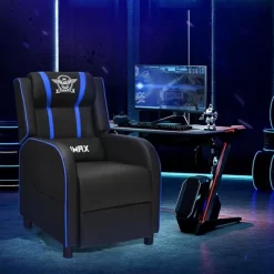 Costway Massage Gaming Recliner Height Adjustable Racing Swivel Chair With Cup Holder Blue/Black/Red