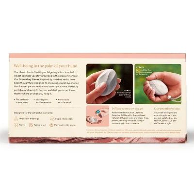 Our innovative Grounding Stones combine the power of fidgeting with scent to switch on your body’s most effective stress relievers: your senses. Perfectly portable, they are ready to be your well-being companion during life’s stressful moments: from an important meeting or the big game to a long flight or a first date. Add the included Essential Oil Blend to the inner diffusion rock to heighten your sensory experience. Bottle features our unique Precision Pump™ to dispense the perfect amount every time with no guesswork and no spills.