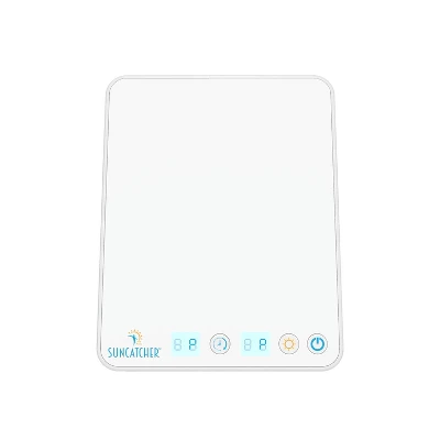 SUNCATCHER LED Therapy Lights help people of all ages fight fatigue and increase alertness during the long winter months. SUNCATCHER uses LED technology that helps people regain focus when there is a lack of sunshine and natural light commonly known as the winter blues. The Ultra model light therapy lamp delivers up to 10,000 LUX* of light to maintain energy and productivity lost due to disruptions in your circadian rhythm that occurs from inadequate access to natural daylight. The Plus model offers three light intensities includes a timer control – 10,000 LUX, 7,500 LUX and 5,000 LUX with sessions of 90, 60, 30 and 15 minutes – to maximize your comfort to help regulate your light intake. Customize your sessions with the included timer by using different intensities and different times of light exposure throughout the day in your home, office or hotel. Great for travel and home use, the Plus model can be positioned on a surface or mounted on a wall for customizable light sessions. The 100 LEDs last up to 50,000 hours for silent and flicker-free light and are UV-Free