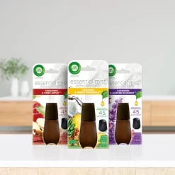 Discover the more natural and premium fragrance infused with natural essential oils diffused by mist with Air Wick Essential Mist diffuser. It transforms fragrance infused with natural essential oils into a gentle mist that surrounds your home. Several premium fragrances available in refills: Lavender and Almond Blossom, Fresh Water Breeze, Mandarin and Sweet Tangerine, Coconut and Pineapple, Peony and Jasmine, Sandalwood, Fresh Cucumber, Eucalyptus, Sweet Melon and Vanilla; seasonal scents like Apple Cinnamon Medley, Pumpkin Spice, Sweet Fruit and Nutmeg, Brown Sugar and Vanilla, Fresh Pine and Juniper and, our Aroma range with Happiness, Sleep, Unwind and Rejuvenate.