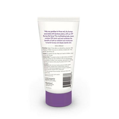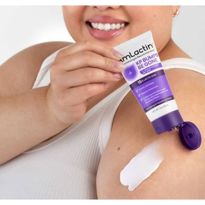Get relief from rough and bumpy skin with AmLactin KP Bumps Be Gone Hydrating Cream. Formulated with clinically proven 15% lactic acid, this exfoliant moisturizing cream helps lock in moisture to smooth rough, bumpy areas from keratosis pilaris. This non-greasy body moisturizer is also fragrance-free. It smooths and softens rough, dry skin. AmLactin body cream helps relieve symptoms of keratosis pilaris and comes in a convenient tube for easy application! Help relieve dry skin with AmLactin moisturizers, the #1 Dermatologist Recommended Moisturizer Brand with Lactic Acid.