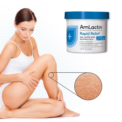 Experience 24-hour moisturization with AmLactin Rapid Relief Moisturizing Cream. Formulated with 15 percent lactic acid, plus three ceramides, this exfoliant moisturizing cream helps lock in moisture for visibly soft skin. A non-greasy body moisturizer, AmLactin Rapid Relief Body Cream transforms your skin’s appearance for visibly soft, youthful-looking skin. AmLactin body and hand cream helps relieve symptoms of keratosis pilaris and dry skin. Help relieve dry skin with AmLactin moisturizers, the #1 Dermatologist Recommended Moisturizer Brand with Lactic Acid.