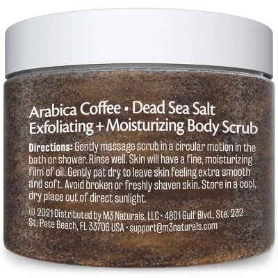 - M3 Naturals Arabica Coffee Scrub provides the best Facial Polishe exfoliating experience as a body scrub, facial scrub, hand scrub or foot scrub! Moisturizing and rich in antioxidants, our natural coffee scrub will help restore your natural complexion while scrubbing away unwanted toxins and dead skin cells!*