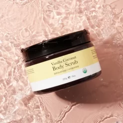 This exfoliating sugar scrub revitalizes dull skin for a radiant glow. Packed with thirst-quenching oils, antioxidants, and anti-bacterial agents, our certified organic scrub will leave your skin feeling hydrated and nourished. Smooth skin is just a scrub away. This exfoliating scrub is body care at its finest. It’s a skin exfoliator for body that is a bath scrub or shower scrub to exfoliate away dead skin suitable for all skin types.