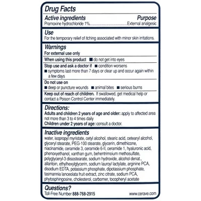 Developed with dermatologists and formulated with the anti-itch ingredient, Pramoxine Hydrochloride 1%, CeraVe Itch Relief Moisturizing Lotion for Dry and Itchy Skin temporarily relieves itching due to insect bites and sunburn, as well as helps soothe dry skin. The formula also contains three essential ceramides (1, 3, 6-II) to help repair and restore the protective skin barrier.The Itch Relief Moisturizing Lotion is steroid-free, fragrance-free and sulfate-free.