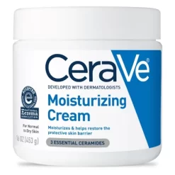 Developed with dermatologists, CeraVe Moisturizing Cream for Face and Body has a unique formula that provides 24-hour hydration and helps restore the protective skin barrier with three essential ceramides (1,3,6-II). The formula also contains hyaluronic acid to help retain skin’s natural moisture. The moisturizing cream utilizes patented MVE controlled-release technology to help replenish ceramides and deliver long lasting moisturization. The moisturizing cream is non-comedogenic, fragrance-free and oil-free.