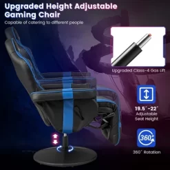 - Ergonomic Height Adjustable Recliner: In addition to the adjustable backrest and footrest, the height of this massage gaming chair can be adjusted from 18.5”-21.5”, capable of catering to different people. The 360°rotation seat allows you to switch directions freely and chat with friends.