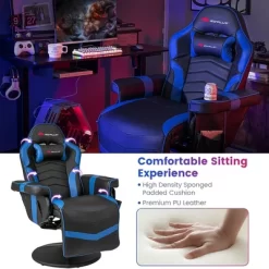 - Reclining Backrest & Retractable Footrest: The backrest can be easily adjusted by a reclining adjust lever within the range of 110° to 130°. 3 lockable angles (110°, 115°, 130°) allow for free switch between playing, relaxing and watching movies modes. The retractable footrest and removable headrest add more comfort when relaxing.