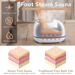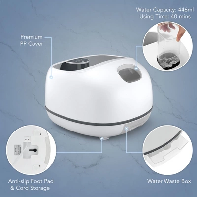 - High Efficiency & Steam Heating: Our foot bath uses innovative steam heating simply by pouring a cup of water into the 446ml-capacity water tank. The foot bath steam massager will provide you with an enjoyable steam sauna spa ex perience for up to 20 minutes without frequent refills, which saves water and energy.