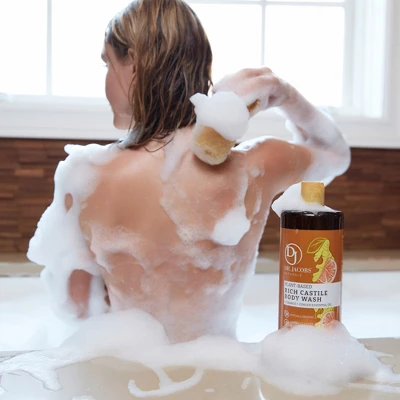 “Orange and ginger essential oils work together to create a clean and invigorating scent in our Citrus Pure Castile Body Wash with moisture enhancing aloe vera and Vitamin E. Oranges are known to be rich in antioxidants and may help in reducing acne breakouts, speed the healing of wounds, and prevent scarring. With the B complex vitamins in oranges, they can also improve the blood flow to the skin, giving you a healthy skin tone. Made with antioxidant rich olive and coconut oil (never palm oil), this natural Pure Castile soap has the ability to moisturize, while keeping your skin hydrated all day with no oily residue. “