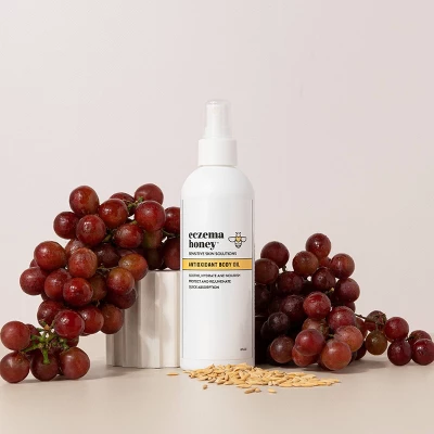 Eczema Honey’s Antioxidant Body Oil is a silky elixir that nourishes sensitive, itchy, eczema-prone skin, while providing an abundance of antioxidant benefits. The formula contains six different nutrient rich oils, all penetrating the skin at varying levels. This body oil envelopes the skin with anti-aging ingredients that soothe and condition. Restores and protects the lipid barrier for radiant skin. How to Use: Generously massage all over the body, on either damp or dry skin. Caution: Specifically designed for external use. Free of fragrance, parabens, phthalates, petroleum, and SLS. Never tested on animals. Eczema Honey’s products are proudly made in the USA.