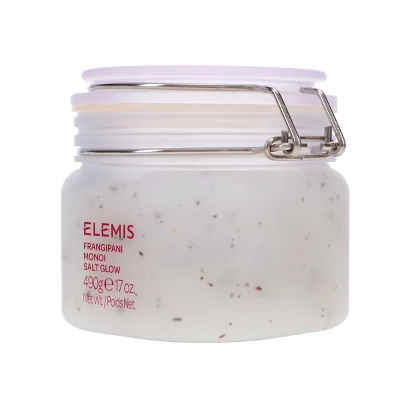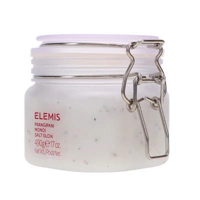 Nothing quite compares to the smooth feeling of freshly exfoliated skin, and Elemis Frangipani Monoi Salt Glow is the product you need to get that feeling. It moisturizes as well as exfoliates your skin, so you walk out of the shower or bath with healthy-looking, glowing skin that feels as good as it looks.Without being overly harsh, the mineral-rich salts gently remove dead skin while also providing essential minerals to your skin. The Tahitian monoi oil locks in moisture so that skin does not become dry, and hibiscus provides Vitamin C for antioxidant protection. Frangipani cleans deep into the skin and revitalizes it with hydration that works for every skin type, even very dry skin. For best results, apply this salt scrub twice a week while in the shower or bath. Massage onto damp skin in circular movements and rinse clean. Gently dry by pressing the skin with a clean towel. Your skin will be left clean and hydrated with a light flowery scent.