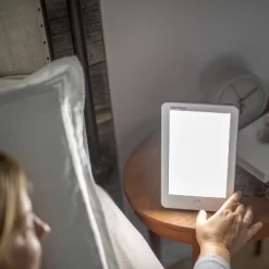 - PORTABLE & PRACTICAL – The ultra-thin tablet design makes HappyLight® Lumi portable enough for use at home or on-the-go, and the perfect solution for the winter blues, insomnia, sunlight deprivation, shift work, office employees, and seniors