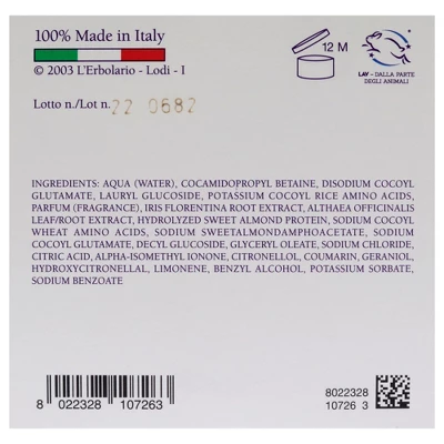 L’Erbolario Iris Shower Gel is ideal for a very fragrant and relaxing bath. The history of the Iris begins far back in time and, more specifically, from the proud features of Egyptian beauties who, as early as the 15th century B.C., Kept the powder of Iris rhizomes as their precious beauty secret, a perfumed powder that they used on their skin. As an ingredient in this shower gel, in the form of a fluid extract, alongside the amino acids of Wheat, the Iris provides a gentle and very delicate cleansing action for skin that is softer and smoother than ever.