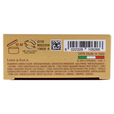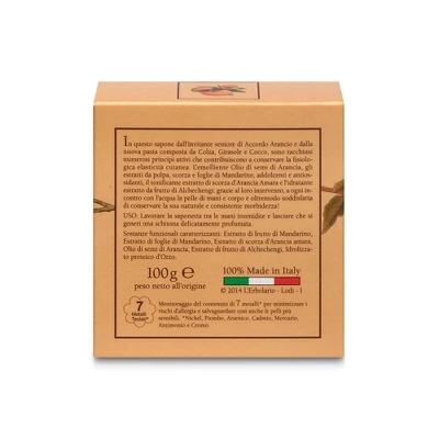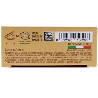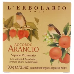 L’Erbolario Accordo Arancio Perfumed Bar Soap has an inviting scent with a paste that is made from canola, sunflower and coconut with numerous active ingredients enclosed, that help maintains the skin physiological elasticity. This bar soap provides gentle cleansing for all types of skin and helps to maintain the moisture properties of your skin to give it a caressing softness.