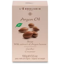 The shape and fragrance of this L’Erbolario Argan Oil Bar Soap is inspired by the perfection of the nut contained inside the fruit of the Argania spinosa. The antioxidant qualities of the Argan leaf extract provide the skin with active defense against moisture and tone loss, delaying the aging process, and the addition of shea butter helps maintain elasticity.