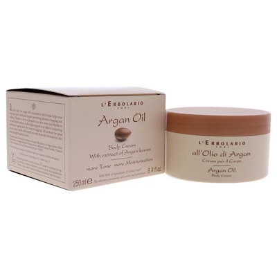 L’Erbolario Argan Oil Body Cream contains argan oil that helps your skin stay extra toned and supple, preventing dryness, chapping, and flaking. Thanks to its rare property as a skin toner, it also helps support nourishing and compacting skin while countering the onset of sagging. All to boost the glow of your skin, which will benefit not only from the formula but also from its light hazelnut scent.