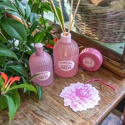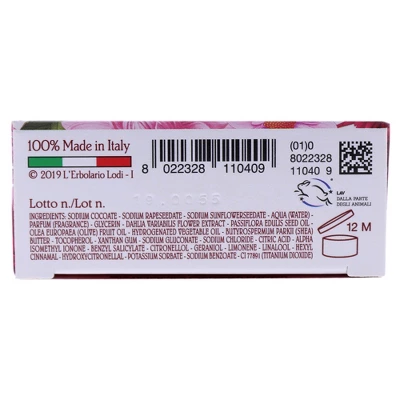 The moisturizing extract of Dahlia and its protective hydrolyzed protein characterize the gentle formulation of this L’Erbolario Shades of Dahlia Perfumed Bar Soap. It is enriched with natural ingredients and citrus floral fragrances to leave your skin radiant with a sweet aroma after your shower or bath. It is ideal for all skin types and creates a rich foaming lather on your skin.