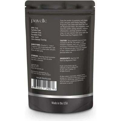 Easing the hardshipEnjoy a calming, ache-relieving treatment right in your own home with the Pavelle dead sea pregnancy magnesium flakes bath soak. Add lavender-scented bath salts into your tub of warm water and let your stress and pain wash away as soon as you step in. Soak your body in a fast-dissolving mixture of natural ingredients and magnesium pregnancy bath flakes. This pack of soothing magnesium soaking flakes adds a touch of luxury and quality to self-care activities.Rest easy knowing this 100% natural, therapeutic formula heals and rejuvenates the body. These powerful, calming bath salts are great for pregnancy, reducing inflammation, and relieving muscle aches. Don’t waste energy fighting through the pain, ease your aches and soreness with the Pavelle dead sea pregnancy soak. Replace the pain of pregnancy with absolute bliss when using a safe, cruelty-free stress reliever. Have peace of mind knowing you are relaxing in a non-animal tested remedy that doesn’t contain harmful ingredients, parabens, or artificial fragrances.