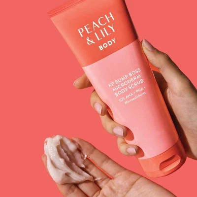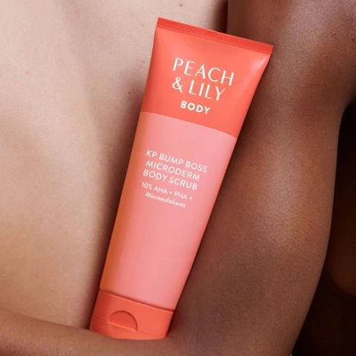 Pesky body bumps, chestne, backne, keratosis pilaris (KP) aka “strawberry skin?” Say “bye, body bumps” with Peach & Lily’s KP Bump Boss Microderm Body Scrub.